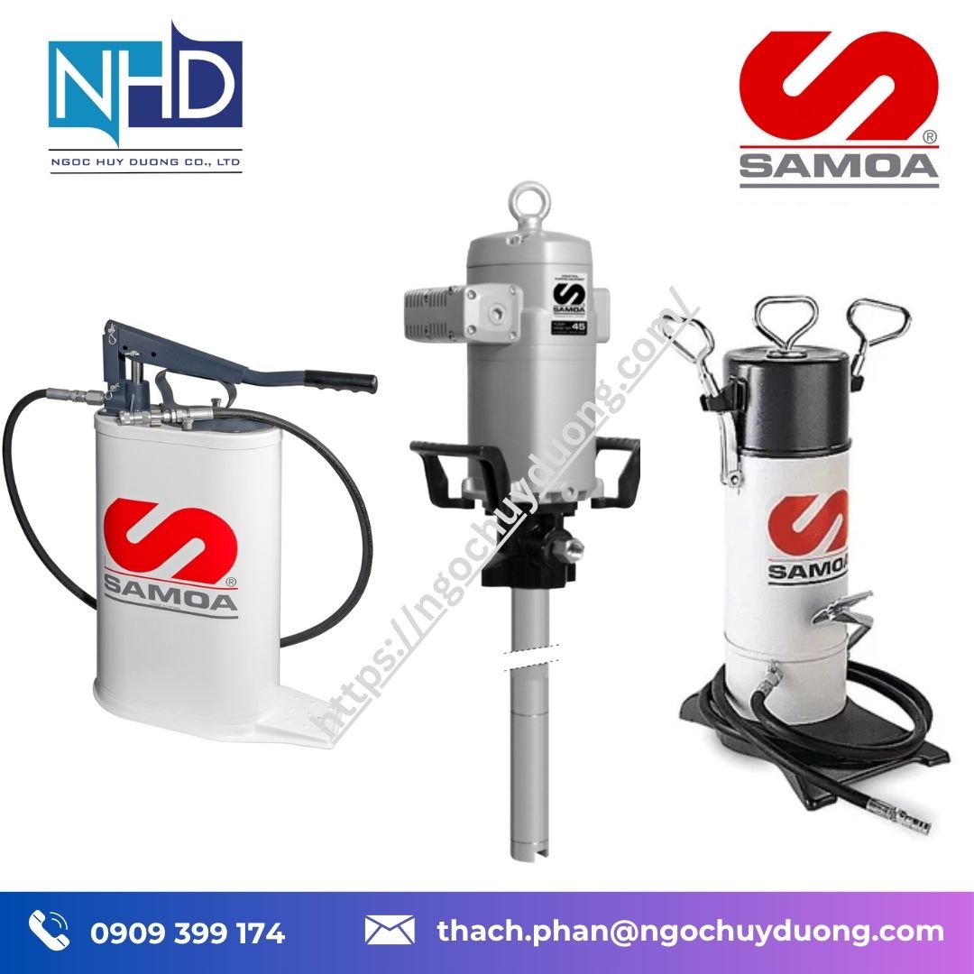 Bơm mỡ SAMOA – Bơm mỡ khí nén và bơm mỡ tay SAMOA là giải pháp toàn diện cho hoạt động bôi trơn trong nhà máy, xưởng sửa chữa, vận hành thiết bị cơ giới, công trình xây dựng, khai khoáng và ngành công nghiệp nặng. Với dải sản phẩm phong phú từ bơm mỡ khí nén tỉ lệ cao (55:1, 60:1, 80:1), bơm áp suất trung bình đến cao, bơm tay gạt, và bộ dụng cụ bơm di động, SAMOA đáp ứng mọi nhu cầu sử dụng từ thùng 12kg, 20kg, 50kg đến thùng 185kg.