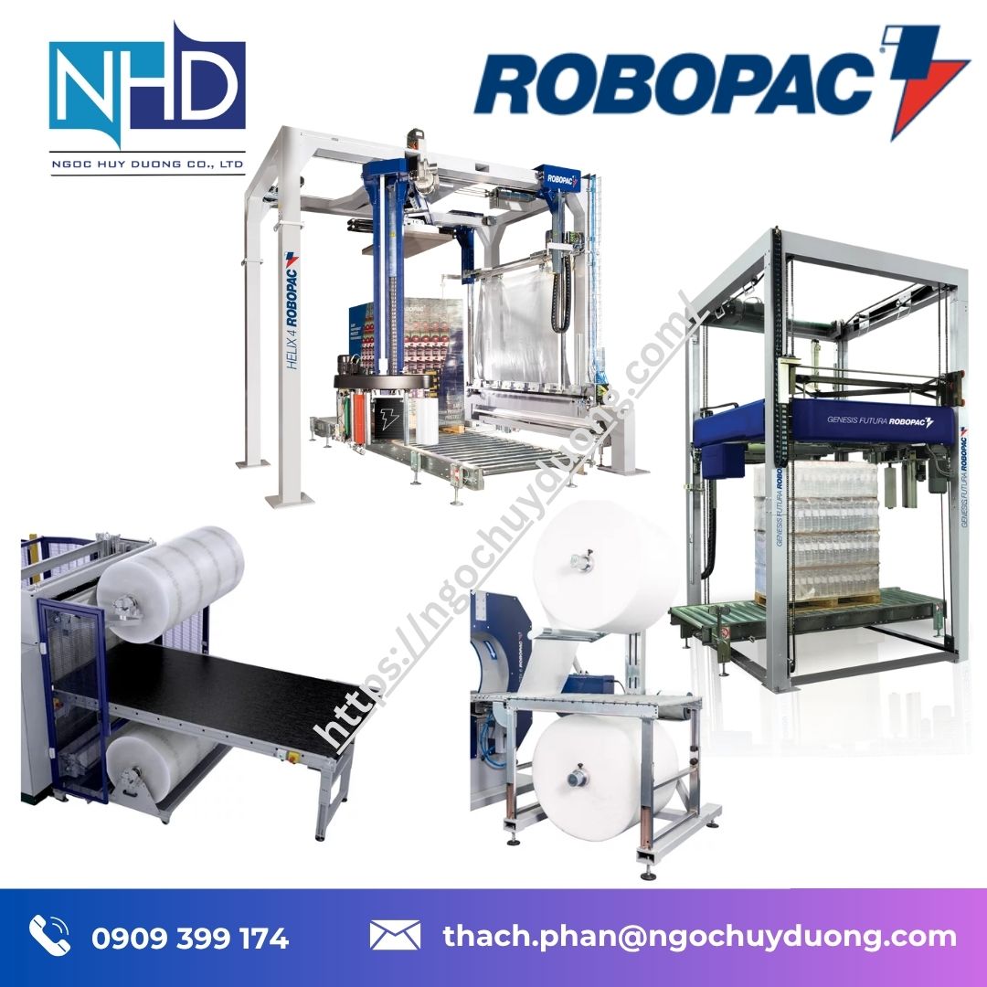 Sản phẩm được phân phối chính hãng bởi Công ty TNHH Ngọc Huy Dương – nhà phân phối máy quấn màng co Robopac tại Việt Nam, hỗ trợ lắp đặt, bảo hành và tư vấn kỹ thuật toàn quốc.
